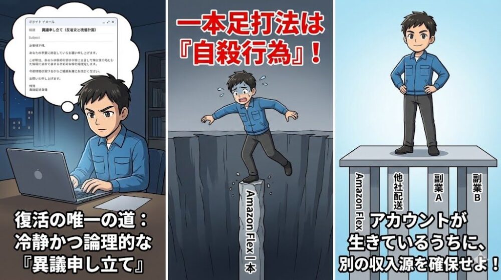 答えは一つ。「アカウントが生きているうちに、別の収入源を確保しておくこと」です。 BANされてから新しい仕事を探すと、審査期間中は無収入になり、生活が破綻します。