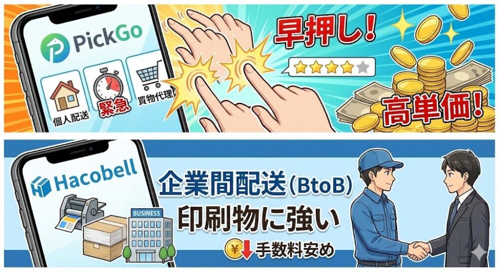 まずは、2大スポット配送アプリの特徴を整理します。 「どっちをやればいいの?」と聞かれますが、結論は「両方登録しておくべき」です。