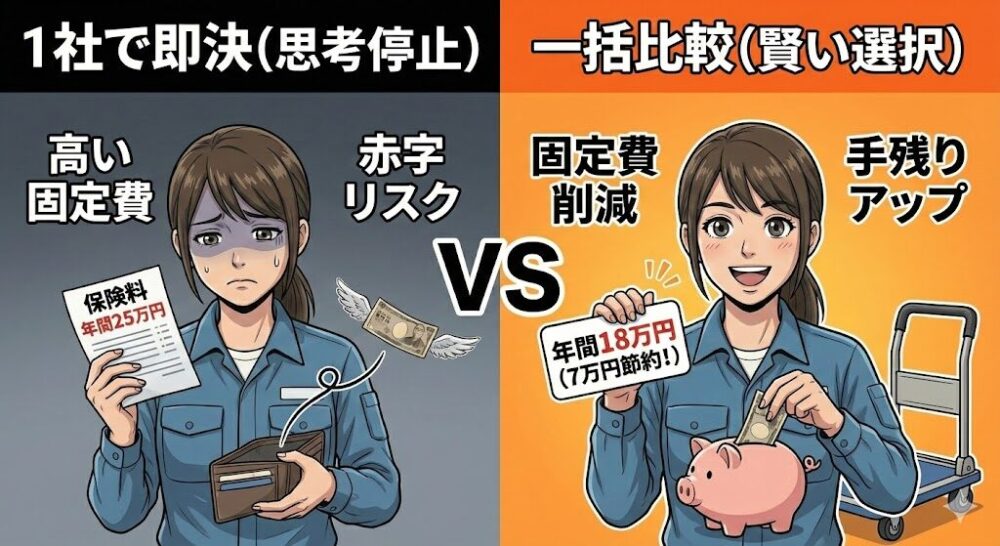 これまで多くの新人ドライバーが「経費に押し潰されて辞めていく」姿を見てきました。その共通点は、保険選びの段階ですでに始まっています。