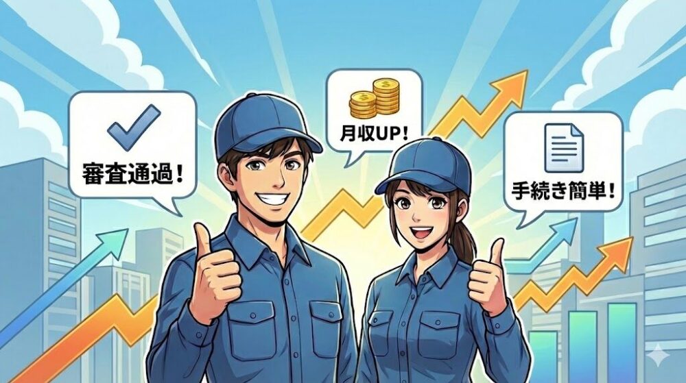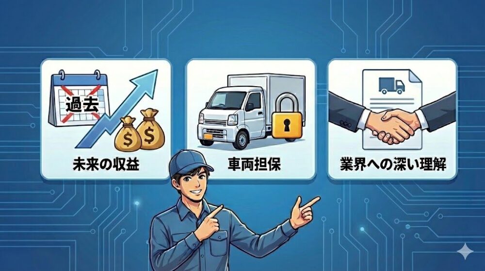 彼らは「軽貨物ドライバーがどれくらい稼げる職業か」を熟知しています。 銀行員は軽貨物の実情を知りませんが、専門店は「真面目にやれば月30万〜50万は稼げる」ことを知っています。だからこそ、応援の意味も込めて審査を通してくれるのです。