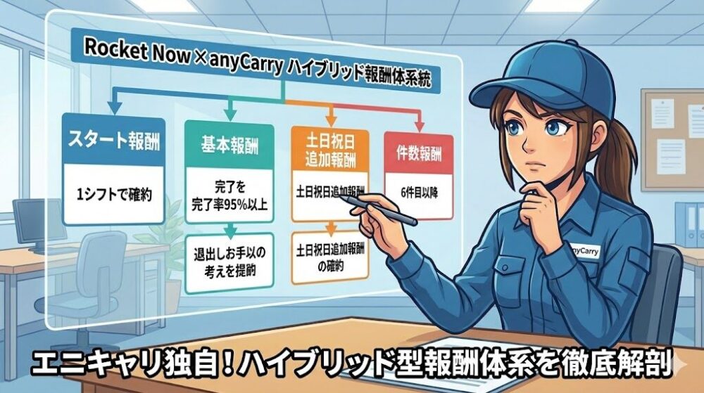 エニキャリ経由で働く最大のメリットであり、同時に最も複雑なのがその「報酬体系」です。Uber Eatsなどの「1件運んで〇〇円」という単純な歩合制とは全く異なります。