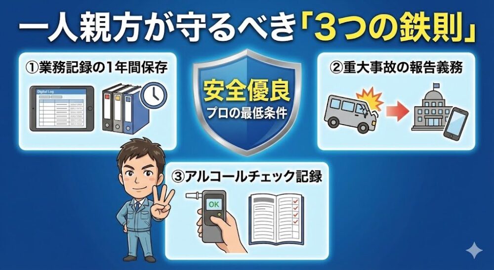 手続きや記録は確かに面倒です。しかし、このルールを完璧に守ることは、Amazon Flexや大手運送会社から「信頼できるプロ」として選ばれ続けるための最強の営業ツールにもなります。