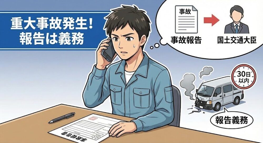 2025年4月から、軽貨物も一般のトラックと同じく、重大な事故を起こした際、30日以内に国土交通大臣(運輸支局)へ報告する義務が生じています。
